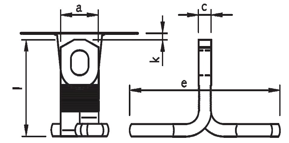 Конструкция включает плоскую головку с центральным отверстием для крепления. Другой конец разрезан, согнут и разведен в стороны, образуя две «лапы» (пяты). Эти две пяты расположены под углом 90° к основному корпусу. Они глубоко уходят в бетон и для дополнительной устойчивости фиксируются прижатой к ним арматурой. Такие материалы, как легированная сталь, обеспечивают превосходную прочность на разрыв, а обработка поверхности (например, горячее цинкование) повышает коррозийную стойкость.