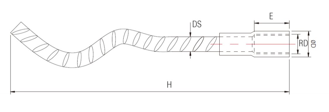 Головка изделия изготавливается из нержавеющей стали, стали 20# или стальной трубы Q345D, а хвостовая часть — из трех видов арматурной стали: HRD 400, 500, 600. Один конец хвостовика прямой, а другой изогнут в форме волны. Две части соединяются между собой методом экструзии (опрессовки).